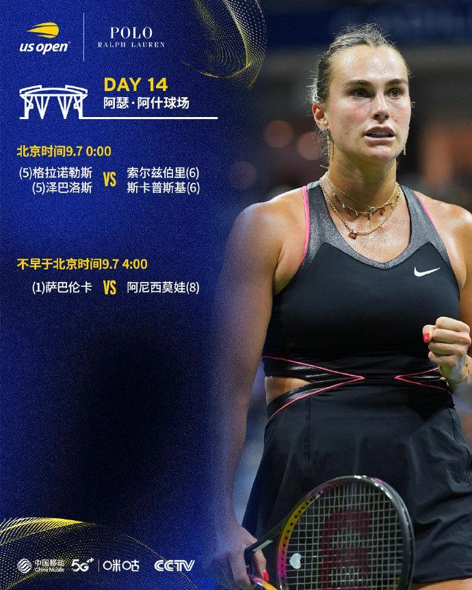 不早于北京时间9.7 4:00 女单决赛:(1)萨巴伦卡 vs 阿尼西莫娃(8)